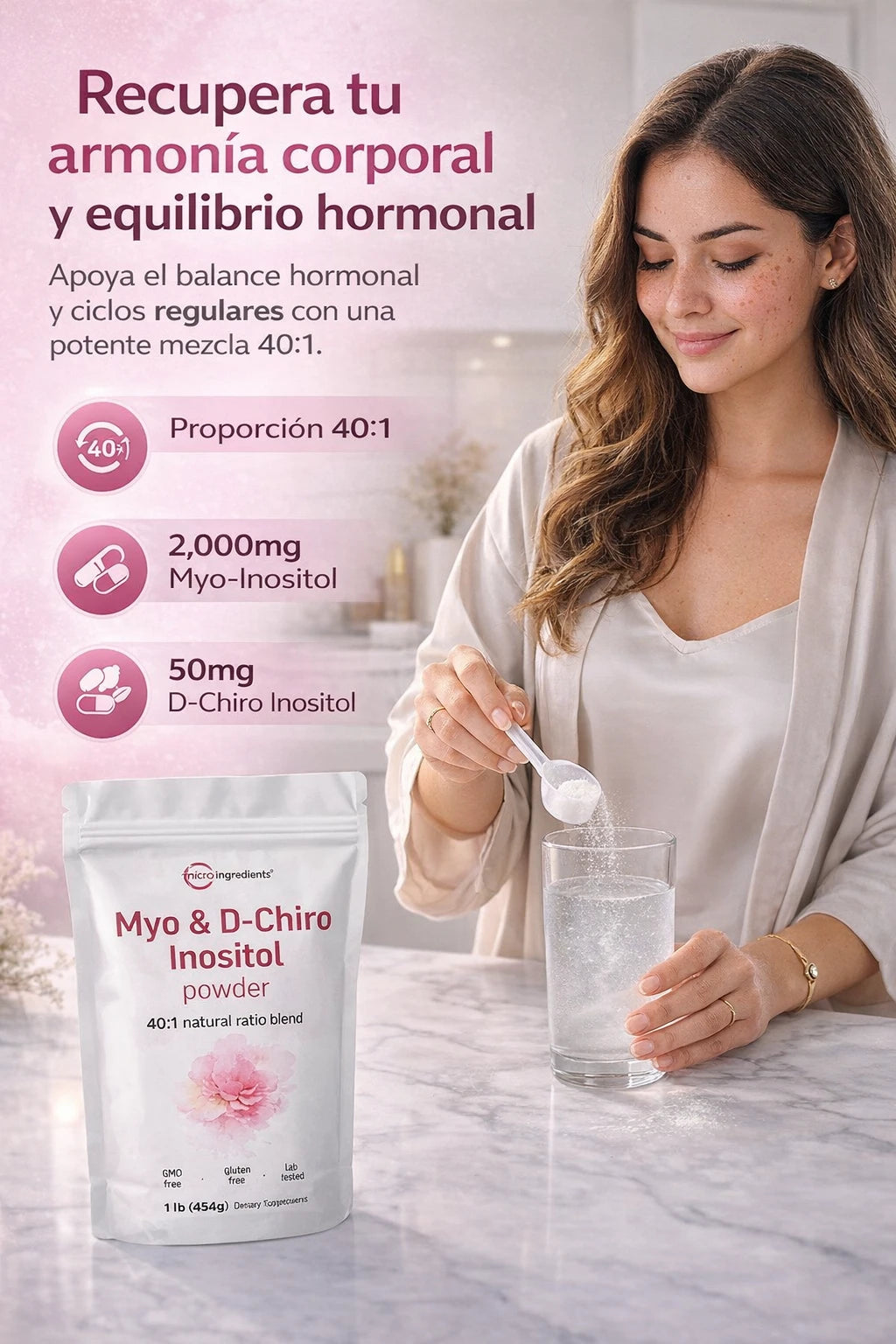 Suplemento natural: Myo & D-Chiro Inositol (40:1) en polvo
